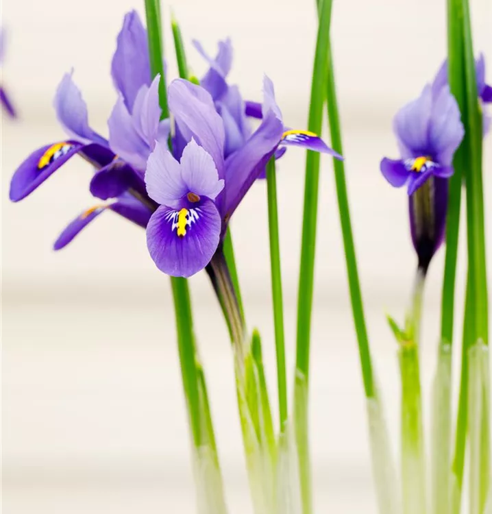 Zwischen Juni und Juli lässt die Holländische Iris ihre Blüten in Blau, Gelb bis Weiß erstrahlen.