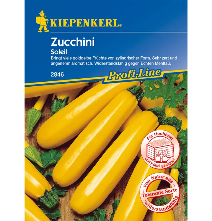 Die Zucchini 'Soleil F1' (Cucurbita pepo) bildet Früchte, die aromatisch schmecken und bereits ab Juli geerntet werden können. Für das optimale Wachstum der Zucchini 'Soleil F1' werden ein sonniger Standort und durchlässiger, nährstoffreicher Boden benötigt.