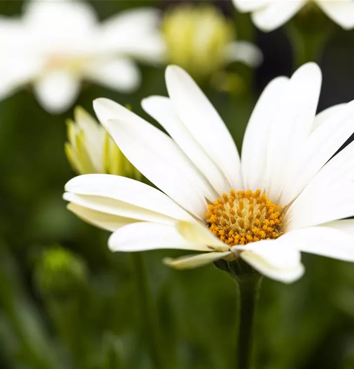 Osteospermum ecklonis 'SummerHero® Ivory' bildet während der gesamten Saison zahlreiche körbchenartige, cremeweiße Blüten. Diese werden etwa 5 - 8 cm groß.