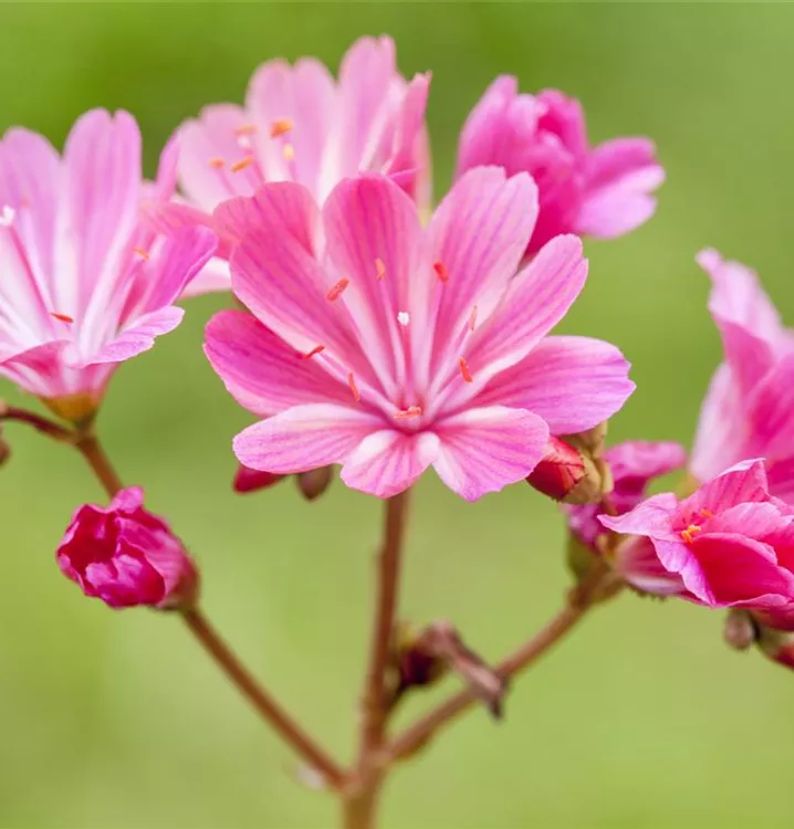 Der Garten-Bitterwurz (Lewisia cotyledon Safira 'Pink') bildet dunkelrosafarbene, ansehnliche Blüten von Mai bis August.