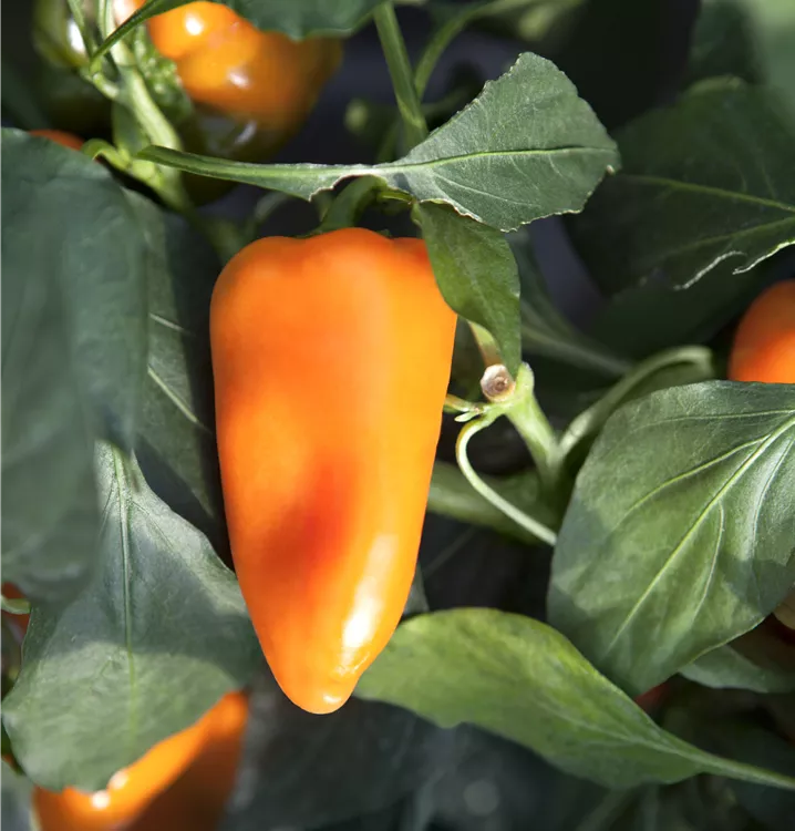 Der Snack-Paprika (Capsicum annuum) bildet Früchte, die aromatisch schmecken und bereits ab August geerntet werden können. Für das optimale Wachstum des Snack-Paprikas werden ein sonniger Standort und durchlässiger, nährstoffreicher Boden benötigt.
