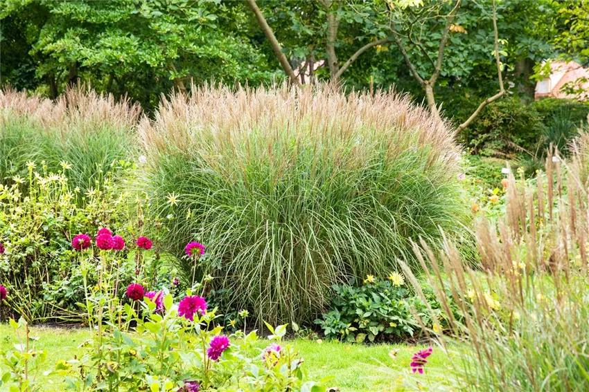 Vor allem sommergrüne Gräser haben ihren großen Auftritt im Spätsommer und Herbst. Da ist es nicht verwunderlich, dass viele die beliebten Gartenbewohner auch mit anderen Pflanzen kombinieren, die im Herbst so richtig leuchten. Laubgehölze als Begleitpflanzen für Gräser sind ein echtes Highlight, denn viele von ihnen färben ihr Laub im Herbst rot, gelb oder orange und sorgen damit für eine ganz besondere Stimmung. Wenn dann nebenan und im Vordergrund noch die wunderschönen Blüten und Halme der Gräser zu sehen sind, kann es eigentlich nicht mehr schöner werden. Lampenputzergras, Chinaschilf und Pampasgras machen in Kombination mit Fächerahorn und Co. eine besonders gute Figur. Dabei kann man die beliebten Gräser entweder in den Vordergrund setzen und die Laubgehölze als Hintergrundbepflanzung nutzen, oder man integriert beide Pflanzen gleichmäßig im Gartenbild und kombiniert so grüne Halme und bunte Blätter. Der Fantasie sind nahezu keine Grenzen gesetzt. Nur auf die unterschiedlichen Bedürfnisse der Pflanzen sollte man achten und die kombinieren, die in Bezug auf Standort und Bodenverhältnisse auch so richtig gut zusammen passen.