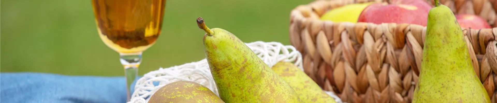 Birnen können in Holzkisten an einem möglichst kühlen Ort gelagert werden. Dabei dürfen sie allerdings nicht neben Äpfeln liegen, da diese während des Reifeprozesses das Pflanzenhormon Ethylen freisetzen, das für eine schnellere Reifung der Birnen sorgen würde und sie so auch schneller verderben lässt. Vor allem frisch vom Baum begeistern Birnen mit ihrem leckeren Geschmack, aber man kann sie auch weiterverarbeiten. Wer sie einkochen möchte, sollte sie kurz vor der Vollreife pflücken, damit sie auch im Glas noch bissfest bleiben. Zur Herstellung von Mus oder Kompott empfiehlt es sich, vollreife Birnen zu wählen, da sie dann ein besonderes Aroma mitbringen, das man auch in den Ergebnissen noch deutlich schmecken kann.