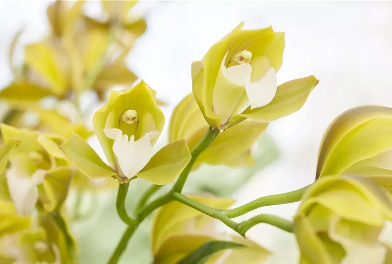 Beim Cymbidium kann man sich entscheiden. Kleinere Sorten passen prima ans Blumenfenster, die größeren überraschen mit gewaltigem Flor und sind geborene Solitäre. Doch die Blühriesen sind auch anspruchsvoll. Wer sich erstmals für Orchideen entscheidet, sollte nicht gerade mit ihnen beginnen.