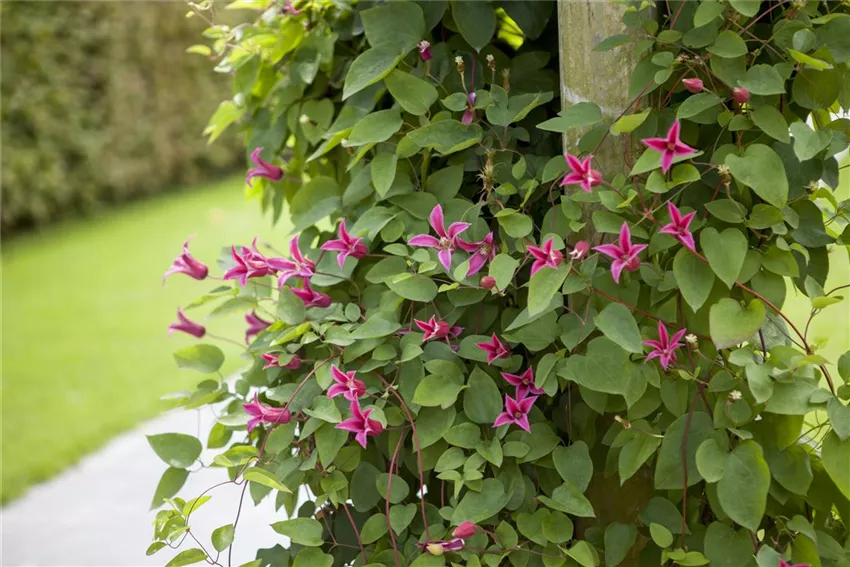 Schon beim Einpflanzen sollte die Clematis eine Rankhilfe bekommen, damit sie nach oben wachsen kann. Dort fühlen sich die Ranken der Kletterpflanze nämlich am wohlsten. Wer eine größere Fläche mit der Clematis begrünen will, der kann das Wachstum der Pflanze selbst steuern, indem dementsprechende Rankgitter befestigt werden, die die Kletterpflanze in eine bestimmte Richtung leiten. Die Clematis wird so wachsen, dass sie sich am besten festhalten kann. Eine Clematis eignet sich aber nicht nur zum Begrünen von Flächen, sondern auch für Säulen, Torbögen und alle anderen erdenklichen Formen. Wichtig ist immer nur die Führung der Pflanze. Wenn sie die bekommt, wird sie so wachsen, wie es gewünscht ist. Dafür müssen die Triebe einfach geführt werden, bis sie sich festgehalten haben. Der optimale Pflanzzeitpunkt für die Clematis ist zwar der Spätsommer, aber Containerpflanzen können auch im Frühjahr oder Herbst gepflanzt werden. Wichtig ist nur, dass die Kletterpflanze genügend Zeit bekommt, um gut anzuwachsen und Kraft für den Winter und das neue Gartenjahr zu tanken.