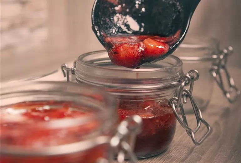 Was für einen Spaß macht es, wenn man die Früchte seiner Arbeit ernten kann! Deshalb bringt es dem Gartenbesitzer so viel Freude, wenn er die Früchte und Beeren vom Strauch oder vom Baum pflückt, in den Mund steckt und genießt! Aber soll es wirklich bei diesem kurzfristigen Genuss bleiben? Natürlich nicht, sagen viele, denn man verarbeitet ja einen guten Teil in leckeren Desserts und schmackhaftem Kuchen. Doch auch das muss noch nicht alles sein. Machen Sie sich doch die wirklich geringe Mühe und verwandeln Sie Ihre frischen Kostbarkeiten in einen langfristigen Hochgenuss. Denn was kann es Schöneres zum Frühstück geben als selbst gemachte Marmelade?